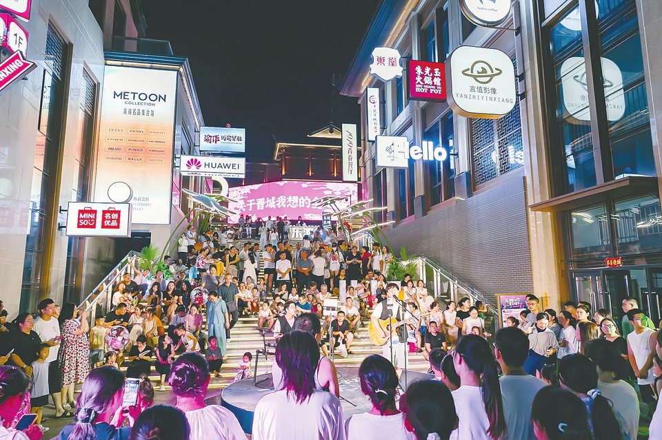 作为晋城夜经济新地标,近日,晋城市城区东滩会商业街举办落日音乐会,吸引众多市民前来纳凉消暑。活动现场,悠扬乐声与夏夜晚风相伴,搭配特色灯光和美食市集,营造出浪漫休闲氛围,更进一步激活城区夜经济活力。