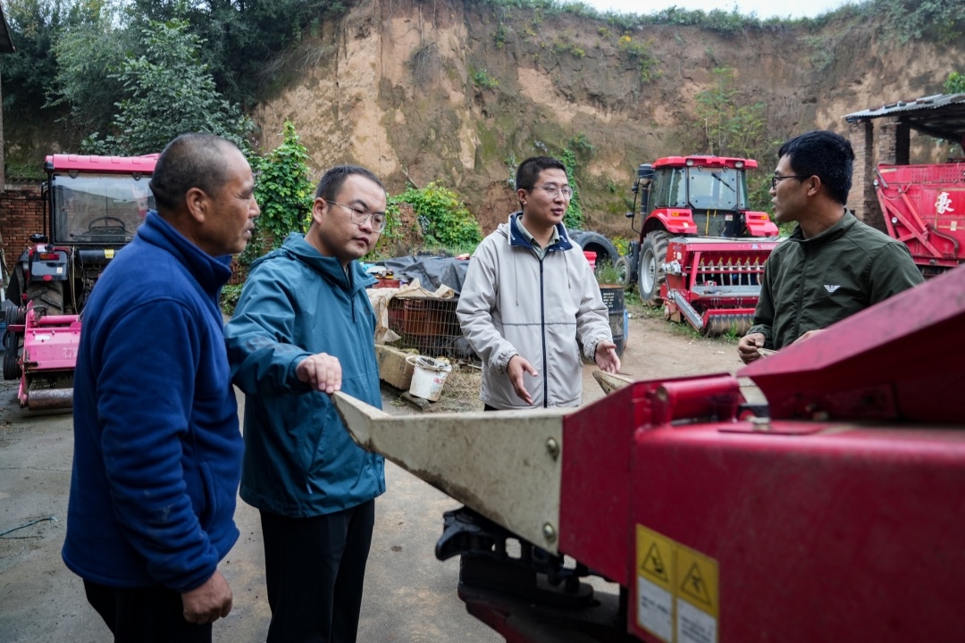 秋粮抢收,农机是当之无愧的“主力军。”米山镇镇村干部深入农机大户家中,叮嘱他们做好农机检修,出现天气转晴的有利窗口期,要立即精准、高效地调配农机具投入抢收作业,集中力量加快收割进度。