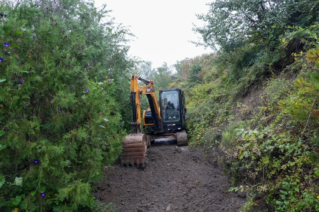 在米山镇侯家庄村田间道路施工现场,挖掘机轰鸣作业,正在对损毁道路进行集中整修。受降雨天气影响,村庄部分道路被雨水冲刷,多处路段出现不同程度的坑洼、深辙、损毁等情况,给秋收机械出行和粮食运输带来极大不便。