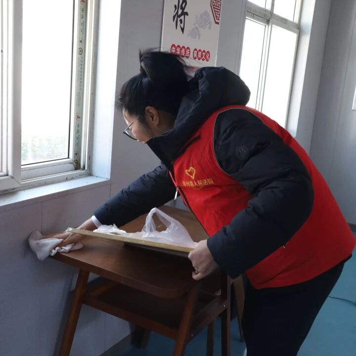 在晋北社区老年日间照料中心,干警们化身“志愿清扫员”,拿起扫帚、抹布等工具,对活动室、走廊、绿化带等公共区域进行全面清洁。大家分工协作、默契配合,擦拭门窗、清理地面、清运杂物垃圾,经过一番清扫,照料中心环境焕然一新,为老人们营造出更加整洁舒适的休憩空间,以实际行动践行“我为群众办实事”的初心使命。