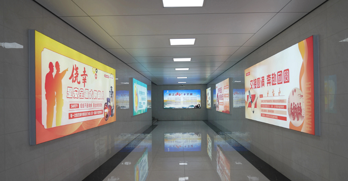 与入井通道一同构筑的,还有一套完整而温暖的文化脉络动线。这条连接井上井下的廊道两侧版面,被精心设计为一条双向的“心理过渡带”,入井方向是“备战之路”,引导职工从生活状态平稳转换为高度专注的工作状态;升井方向是“归家之路”,致力于抚平疲惫、肯定价值,呼唤职工回归家庭角色。终点处“前方到站,爱在等您”让职工彻底卸下工作的紧张,满怀被尊重、被关怀的暖意,轻松踏向真正的归家之途。它让每一次上下井,都成为一次有仪式感的安全教育与心灵慰藉。