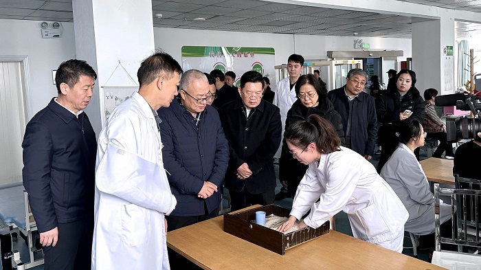孟贵芳一行首先深入神经康复科,实地观摩患者康复训练场景。在治疗大厅,细致察看了各类康复项目的实施过程,对晋城市康复医院康复团队的专业技术和人文关怀给予了充分肯定。并对医院坚持“科技赋能康复”的发展思路,持续引进并融合应用前沿技术提升服务能力的举措表示高度认可。