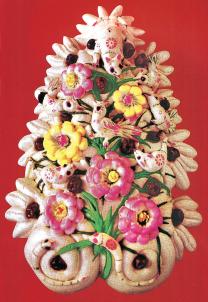 高平的民间面塑历史悠久,它盛行于民间,是民俗活动和节日活动中不可或缺的内容。它不仅实用,还有观赏价值,是民俗文化的重要组成部分。高平面塑的内容极其丰富,春节有“枣山”和各种动物造型的“花馍”,元宵节有“花饦”,七月十五有“面羊”“谷祭”,婴儿满月有各种造型的“蒸饼”,给老人祝寿有“寿桃”,结婚大喜则有“龙”“凤”“葫芦”“石榴”“牡丹”等造型喜庆吉祥的面馍。其中,大型面塑制品“猪羊祭”“青狮白象”“状元祭塔”颇具代表性。