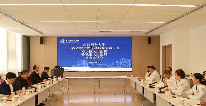 2026年1月1日,山西医科大学党委书记王军、山西锦波生物医药股份有限公司董事长杨霞一行莅临晋城市人民医院进行参观交流。晋城市人民医院党委书记畅晋军、院长王霞、纪委书记张宁、副院长潘三葱、副院长牛东升,以及相关临床医技科室、职能科室负责人和博士代表参加活动。