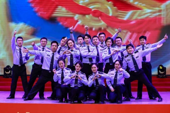 茶话会在激昂澎湃的开场舞《平安战鼓》中拉开帷幕,铿锵鼓点奏响守护平安的时代强音。歌曲《我们是光荣的司法行政人》唱出了司法行政队伍的忠诚履职与无悔坚守;相声《司法话团圆》以诙谐幽默的语言,展现法治护航万家团圆的生动场景;朗诵《人民检察官》《路口的光——我们是交通安全守护人》《法润初心 逆光而行》饱含深情,致敬坚守岗位、护佑民生的政法力量;情景剧《蓝盾耀青春》《有事您(宁)说话》、小品《冰与水的交响曲》聚焦政法工作一线,用鲜活故事诠释政法干警、网格员们的责任与担当。舞蹈《一路花开》以优美的舞姿,描绘出法治护航下社会和谐、人民幸福的美好画卷。
