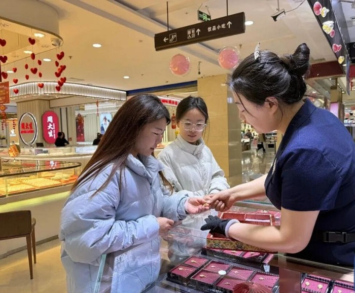 商场里,新年气息已经十分浓厚。每到这时,“新年战袍”总能成为服装市场的热销产品,各类融入马元素的服饰花样繁多,国潮马、刺绣马各具巧思,设计感十足。除此之外,商场黄金柜台也同步迎来销售高峰。