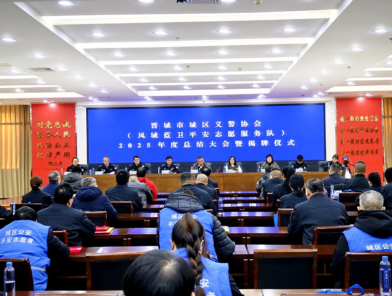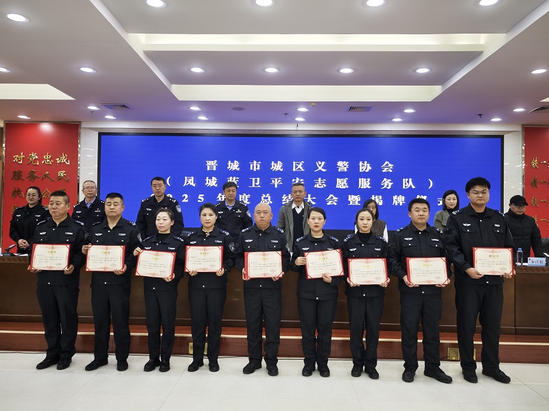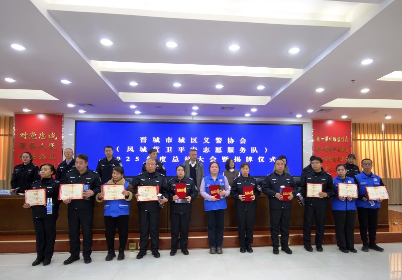 1月10日,晋城市城区义警协会2025年度总结大会暨中共晋城市城区义警协会支部委员会、晋城市城区义警协会人民调解委员会揭牌仪式举行,相关领导参加并出席活动。晋城义警、凤城蓝卫平安志愿者代表、爱心单位代表及凤鸣社区、新华小学相关负责人等嘉宾齐聚一堂,共忆志愿初心,共话平安愿景。