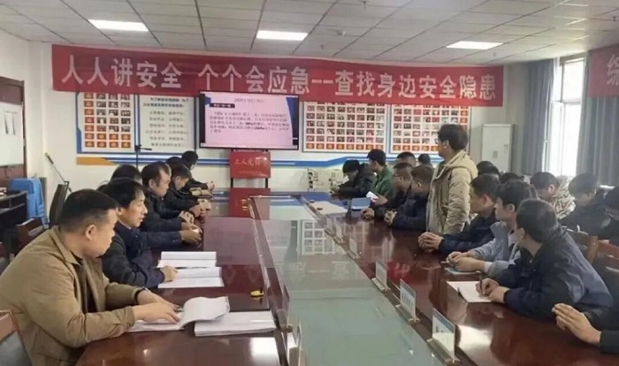 生产区队的班前会上,综放一队学习正开展得热火朝天。队长结合近期行业内典型事故案例,拆解“违章操作引发冒顶事故”的全过程。