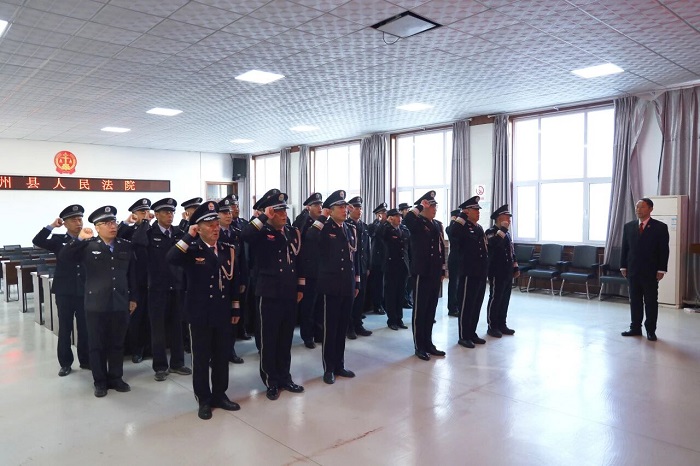 在第六个“中国人民警察节”到来之际,全省法院司法警察视频会议召开。泽州县人民法院全体司法警察在分会场参会,共同奏唱国歌、重温入警誓词。