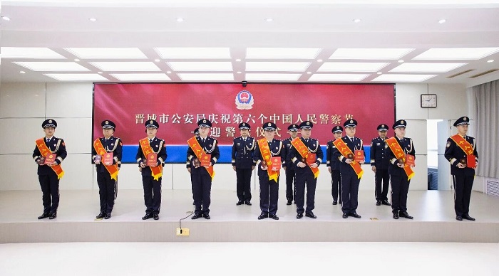 仪式上,贺文代表晋城市公安局党委向全市公安民警辅警致以节日的祝贺和诚挚的问候。他指出,过去的一年,全市公安机关广大民辅警日夜坚守、默默付出,按照“整体工作创一流、单项工作争第一”的目标,忠诚履职、实干担当,有力确保了全市社会治安大局持续稳定。他强调,全市公安民警辅警要自觉践行“对党忠诚、服务人民、执法公正、纪律严明”的庄严承诺,锚定更高目标、扛起更重担当,奋勇拼搏、阔步前行,为奋力谱写中国式现代化晋城篇章作出新的更大贡献!