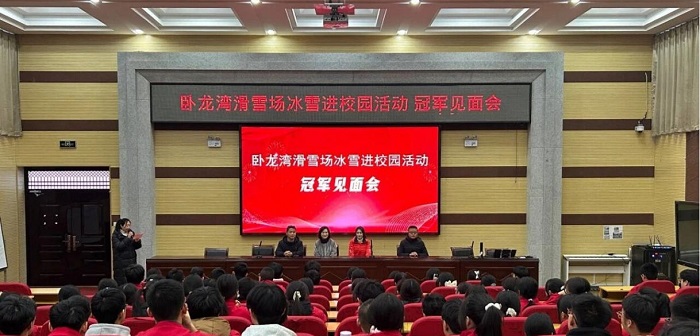 1月10日,卧龙湾滑雪场“冰雪进校园”冠军见面会在高平一中举行。自由式滑雪空中技巧世界冠军程爽亲临现场,与同学们展开热烈互动。