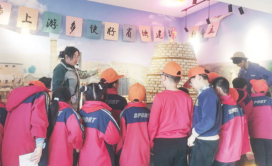 小学生研学团队在应朝钢铁厂展厅参观。李卫彬 摄