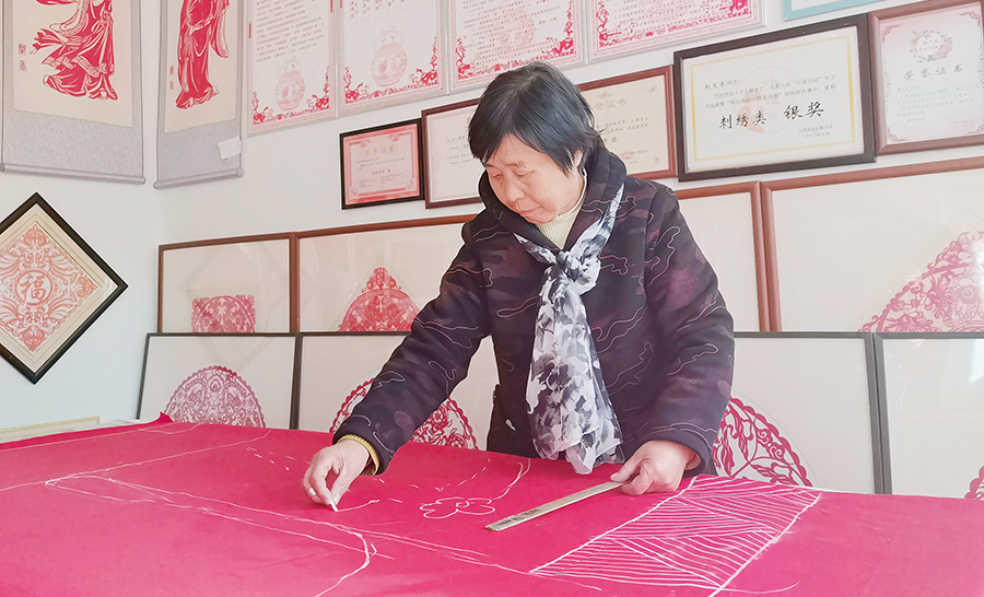 赵兰香是陵川县杨村镇乔山村人,自幼便喜爱剪纸艺术,在母亲指导下,她从剪窗花、花卉图等纹样入手,一步步摸索钻研,逐渐掌握了各种剪刻技法,《中国梦》《清凉古陵》《八仙》等作品屡获省市县级奖项。2025年,已是晋城市工艺美术大师的她,萌生了一个大胆的念头。