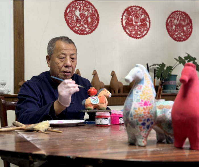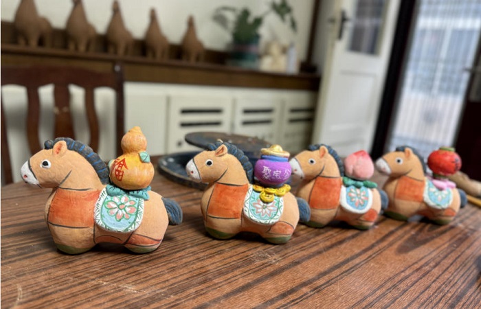 今年70岁的史月明老师,从事泥塑创作已有三十多年。多年来,他在坚守传统手艺的基础上,不断探索创新。马年到来,除了《骏马迎春》,他还精心创作了《家有喜事》《年年有余》《马上事事如意》《马上有钱》《五福临门》等一系列主题作品。这些作品既保留了古泫泥塑的传统手法,又贴合当代人的审美,还赋予了吉祥寓意,深受市场和市民的喜爱。