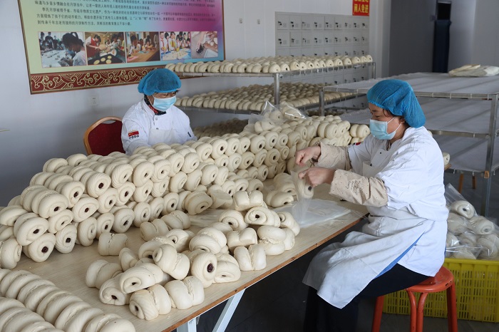 小小的泡麦面馍,不仅是舌尖上的年味,更是带动乡村振兴的“致富馍”。该基地为当地40位农民提供了稳定就业岗位,助力她们实现“家门口就业”;以订单农业模式,带动周边50多户农户靠种植小麦实现增收致富;同时构建起“种植+加工+销售”完整产业链条,让农民共享产业发展红利。“在家门口做馍,既能照顾家庭,每个月还有稳定收入,日子越过越有盼头。”正在制作泡麦面馍的女工张丽霞笑着说道。