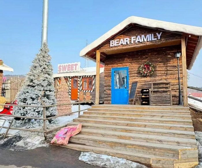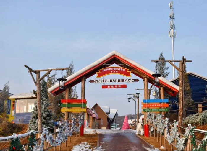 景区内,工人们正在搭建灯光长廊和“熊孩子部落”主题场景。不远处,太行雪乡北欧童话小镇已初具规模,木质小屋、雪花装饰、彩色灯带错落排布,节日氛围感拉满。