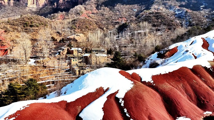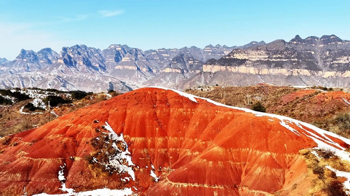 不必远行,就在阳城红砂岭,赴一场雪与丹霞的约会,把冬日的温柔与壮阔尽数收入眼底。(王兴泽)
