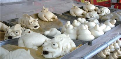 润城泡麦面馍因使用传统酵母发酵,松软且有韧性,除春节的代表作“枣糕”外,还会根据不同的用途做成具有不同寓意的造型。例如送给孩子的“属相”面塑,祈愿事事如意的“面如意”,以示吉祥的“门头鸡”,寓意年年有余的“水缸鱼”,祝愿生活年年高的“狮子糕”“花糕”等。