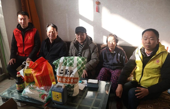 慰问组为社区20户困难家庭送上米面油、粉条、醋、酱油等生活必需物资,与群众亲切交流,细致询问生活状况与实际需求,叮嘱大家注意防寒保暖,把关怀与祝福送到群众心坎上。