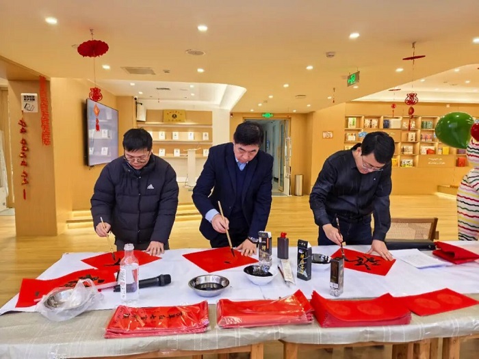 讲座结束后,赵俊峰领衔多位书法家挥毫泼墨,现场创作春联。一副副红彤彤的春联、一个个圆润饱满的“福”字,不仅传递了新春的美好祝福,更将法治理念植入人心。