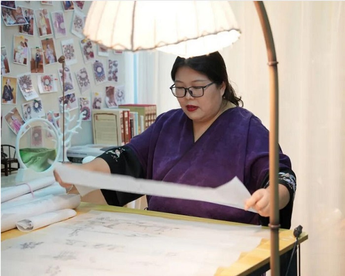 郭晓杰出生于一个刺绣传承的家庭,姥姥和妈妈都是远近闻名的绣娘。早年间,姥姥靠绣花做代工,后为提升绣品价值,姥姥和妈妈开始尝试制作自己的绣品。受家庭影响,郭晓杰自幼钟情传统工艺。2021年,郭晓杰成立了山居手工坊,组建了包括老绣娘、服装设计师、绘画能手、缝纫工、裁剪工等在内的团队,专攻手绣服饰。