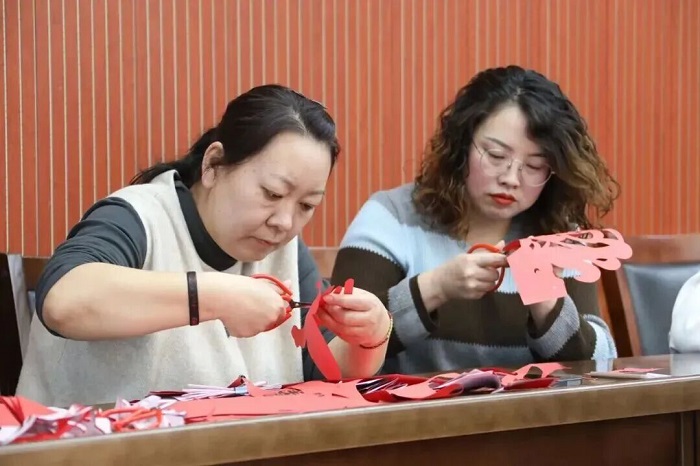 来自泽州县人民法院的剪纸能手来甜甜等同志也带来了精彩的非遗展示。剪刀在红纸间灵活穿梭,栩栩如生的窗花、寓意吉祥的图案跃然纸上,精巧的手艺令人赞叹不已,展现了传统民间艺术的独特魅力,也为活动增添了别样的文化韵味。