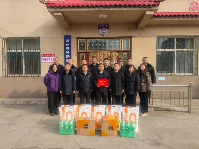 为切实做好春节前慰问工作,传递上级部门对一线护路队员的关怀与温暖,进一步凝聚队伍士气、激发工作热情,2月6日,晋城市护路中心主任助理申浩带队深入泽州县护路中心,开展新春慰问活动,为坚守在铁路护路联防一线的队员送上慰问金、慰问品和节日的美好祝福。泽州县委政法委常务副书记杨俊锋参加慰问。