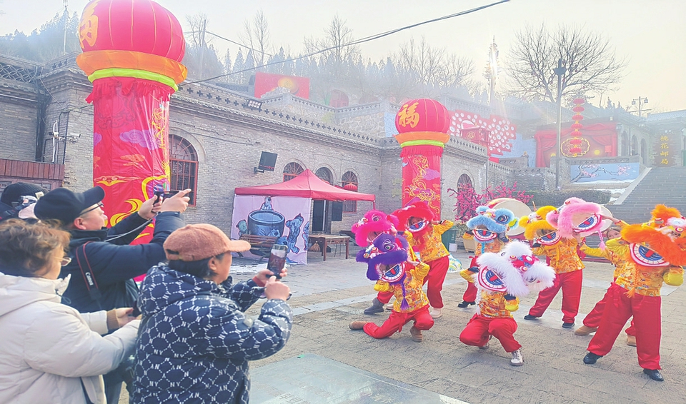 阳泉桃林沟村景区民俗表演吸引游客驻足观看。 王昕 摄
