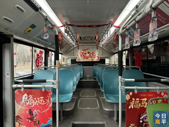 近日,高平市的公交车换上“新装”,车厢变身移动的“年味空间”,让出行满载暖意与喜庆。