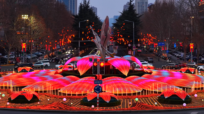 与此同时,晋城市区主干道、广场公园的花灯也全部亮了!晋城全城披上了流光溢彩的年装。
